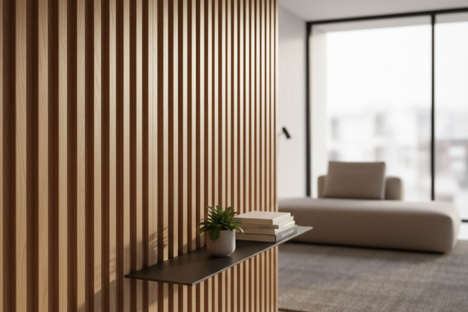 Contemporary fluted wall and ceiling panels that enhance visual appeal with depth and texture.